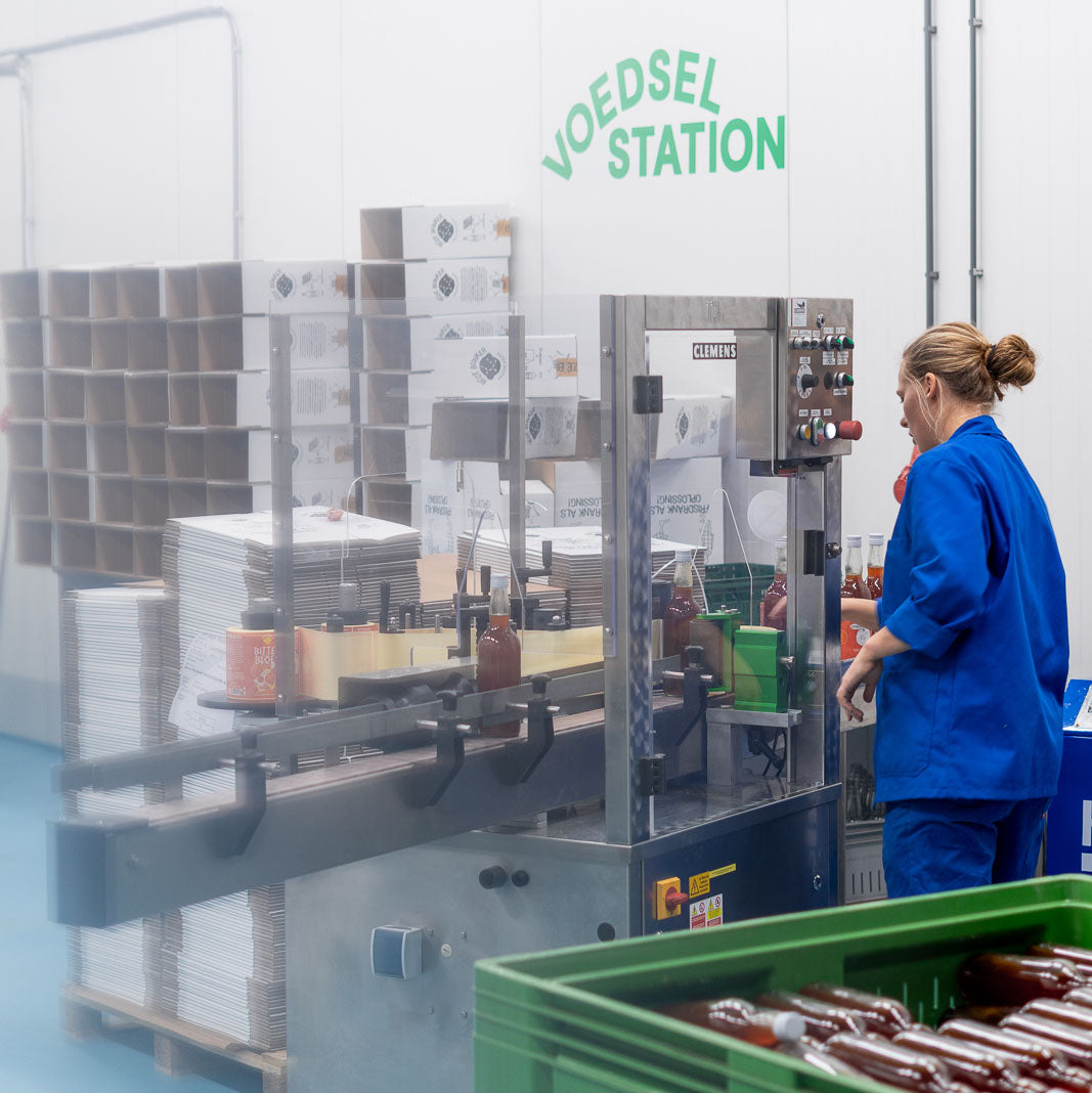 De productielocatie in de fabriek is het hart van Voedselstation. Het is een dynamische plek met verschillende faciliteiten voor het produceren van drank en voedsel. Hier kan je van koken tot vullen, labelen tot doppen draaien van klein opschalend 2000 units op een dag wilt maken: het gebeurt hier allemaal Heb je aanvullende wensen, dan kunnen we deze mogelijk samen en wellicht met andere makers helpen realiseren.