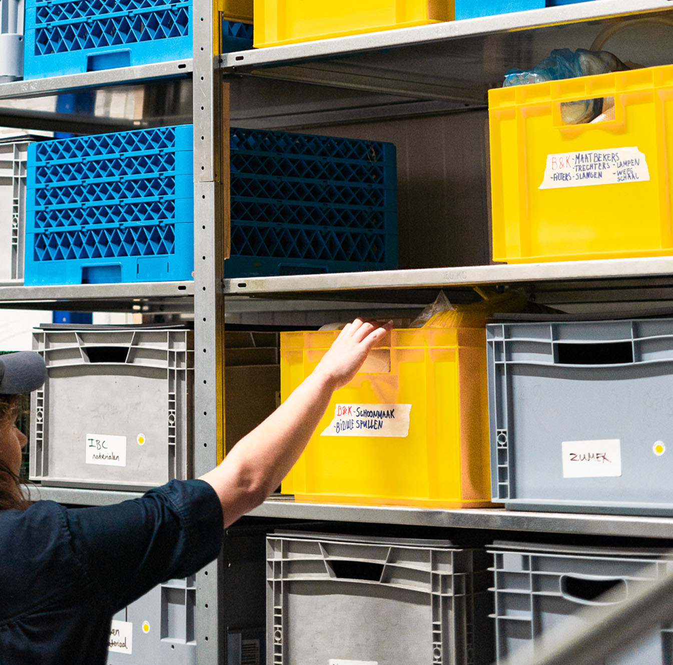 In Voedselstation zijn er verscheidene mogelijkheden voor opslag. Er is ruimte voor opslag op pallets, er zijn schappen voor kratten en er is een koel- of vriescel. Deze opslagruimte wordt in overleg afgenomen tegen een meerprijs. Voor grote hoeveelheden of langdurige opslag hebben we een sterk netwerk in de omgeving. Voor meer info, neem contact op met de floormanager